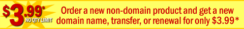 Domain Registration - Free Forwarding with masking, free parking/For Sale/Starter page and full DNS control. |